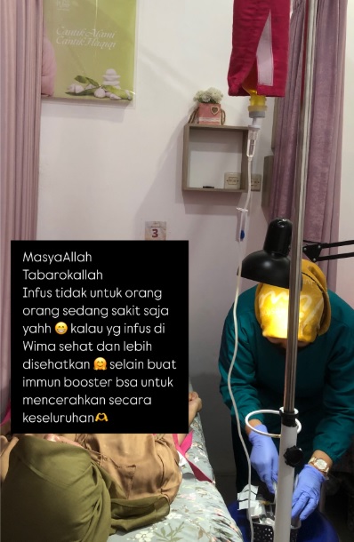 Treatment ini dirancang untuk mencerahkan kulit Salima.Tindakan infus yang berisikan formulasi multivitamin, termasuk Vitami C yang juga berfungsi untuk membantu meningkatkan kekebalan tubuh.